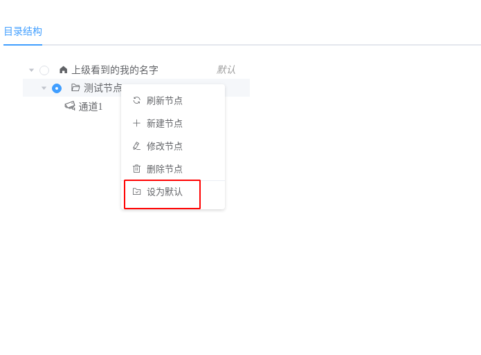 如果需要后续自动生成的流信息都在某一个节点下,可以在对应节点右键设置为默认