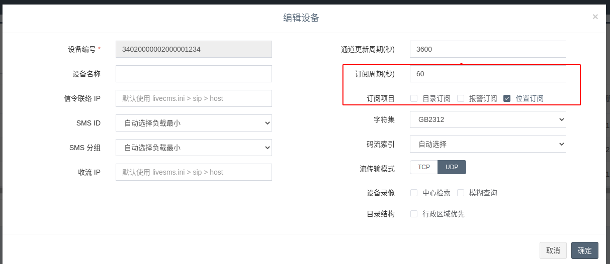 1.4.4. 编辑liveGBS设备信息,开启GPS订阅