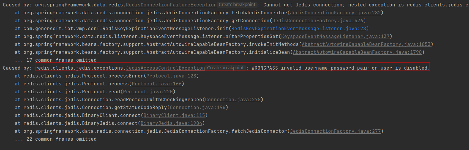 错误原因: redis配置错误,可能原因: 密码错误