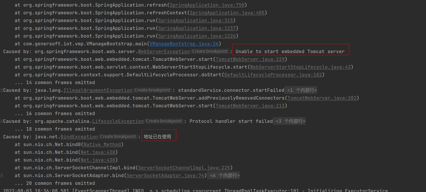 错误原因: WVP Tomcat端口配置错误,可能原因: server.port端口被占用